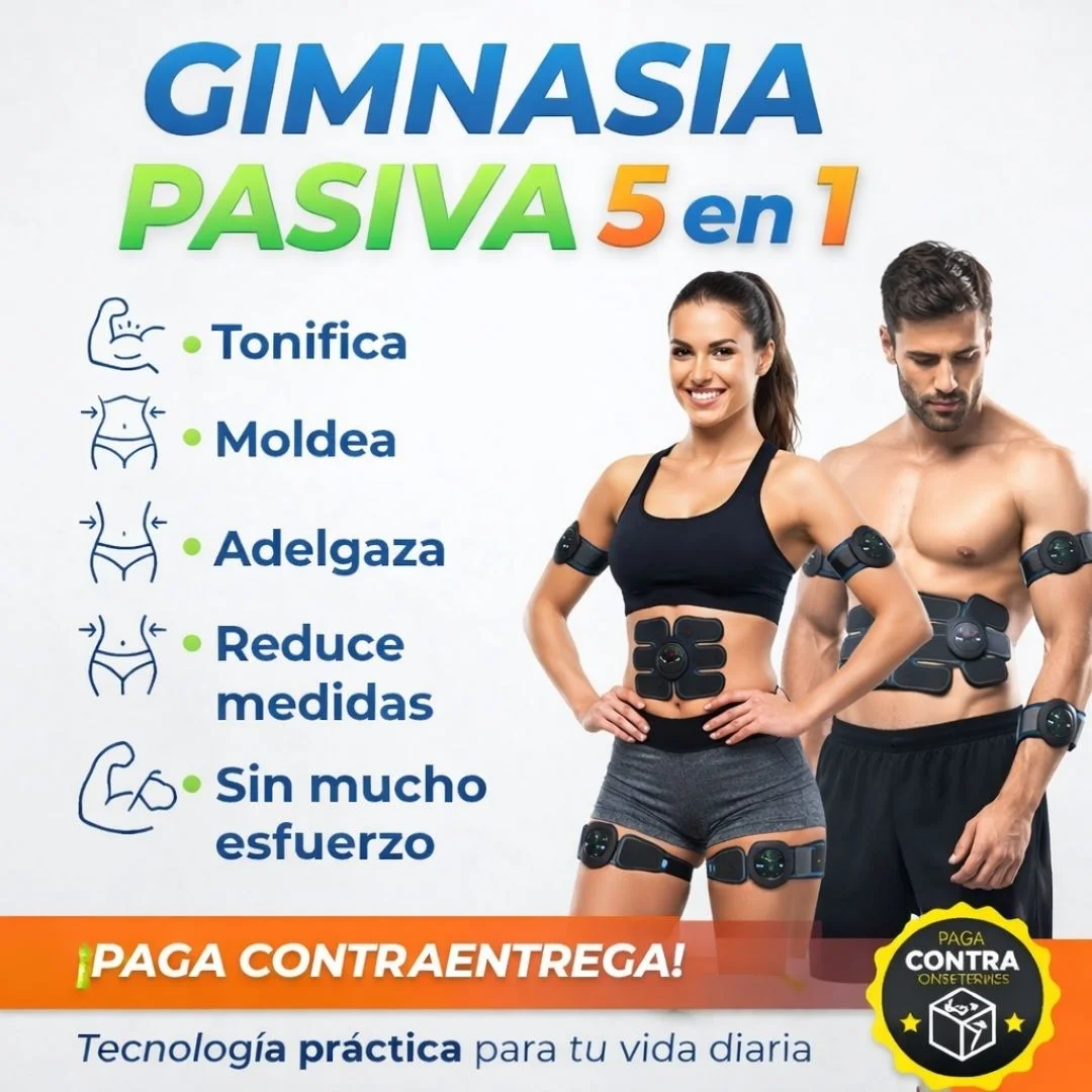 Olvídate de las rutinas largas. El Kit Gimnasia Pasiva 5 en 1 activa tus músculos mientras trabajas, descansas o ves TV. Resultados sin cambiar tu rutina diaria